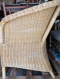 Poltrona realizzata in rattan beige. Perfetta sia da interno che da giardino, per esempio all'ombra di un gazebo, oppure su di un terrazzo. In caso di maltempo la poltrona va tenuta al coperto, altrimenti potrebbe rovinarsi. Misure ingombro: altezza da terra a sommità schienale 80 cm, larghezza 66 cm, ingombro profondità complessiva circa 60 cm. Vendo per inutilizzo. Preferibile ritiro a mano ad Altavilla Vicentina (VI)