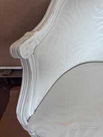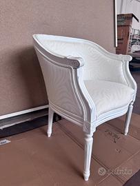 Poltrona pozzetto laccat Bianco con parti scoperte .. shabby, in ecopelle bianca stanpata , misure H cm 78x60 di profondità . Riginita in ogni dettaglio