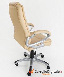 Poltrona da Ufficio Presidenziale, ergonomica girevole in Ecopelle di colore Beige. -Prezzo: 118,50 euro IVA inclusa -Trasporto GRATIS in tutta Italia -Possibilità di pagare alla consegna con 6 euro in più Ideale per riunioni e conferenze in ufficio, ma anche per la casa e lo studio in cameretta, dispone di un pistone a gas per regolare l'altezza della sedia a livello della scrivania e di un sistema dondolo per regolare la postura. Presenza di microfori nella parte centrale della seduta e della spalliera per permettere una migliore areazione. Realizzata con ottimi materiali, questa comoda poltroncina presidenziale può reggere carichi molto pesanti. La qualità dell'ecopelle utilizzata per il rivestimento è ottima ed è caratterizzata da morbidezza al tatto, traspirabilità, idrorepellenza, resistenza all'usura e facile pulizia. Tutte le nostre comode e anatomiche poltrone non sono mai state usate, sono anzi fornite nuove con garanzia e regolare documento fiscale. SCHEDA TECNICA: - Colore Seduta : Beige - Altezza Regolabile a Gas - Poggiabraccia Imbottiti - Supporto Lombare - Meccanismo a dondolo regolabile e bloccabile - Altezza Spalliera: 76 cm - Larghezza Spalliera: 48 cm - Profondità Seduta: 56 cm - Larghezza Seduta: 54 cm - Larghezza Seduta con braccioli: 64 cm - Altezza Spalliera da terra min/max: 111/121cm - Altezza Seduta da terra min/max: 46/56cm - Base in Nylon con 5 Ruote - Diametro base con ruote: 68cm sedie imbottita riunione operativa conferenza direzionale Contattaci subito per avere maggiori informazioni. Oppure inviaci un messaggio con il tuo numero e ti richiameremo non appena possibile Telefono/Whatsapp: 388 3274125