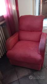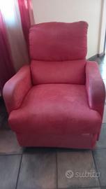 Vendo poltrona rossa in alcantara. Ha un poggiapiedi richiudibile manualmente.