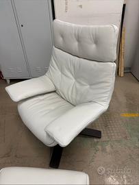 Vendo poltrona Re-Vive Natuzzi in pelle bianca, modello Queen reclinabile: comfort eccezionale, si adatta al corpo in modo intuitivo. Struttura solida in metallo marrone opaco. Nuova.