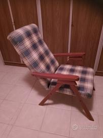 Poltrona in legno e stoffa, reclinabile, buone condizioni. Trasporto a carico dell' acquirente.