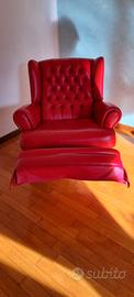 Poltrona reclinabile in pelle colore rosso, con leva per sollevare appoggio gambe e lo schienale si abbassa. il bene è in ottime condizioni.