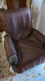 Vendo, per recuperare spazio in camera, poltrona di colore marrone misura H 90cm, L 80cm e Profondità 70cm completa di copripoltana e cuscini stesso colore. I braccioli sono, come da foto, in alcune parti consumati così come si vede dalle foto. La poltrona è perfettamente funzionante in tutte le sue funzioni. Vendo euro 20