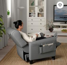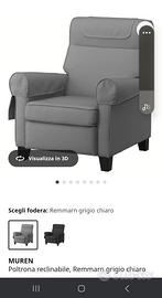 Produttore Ikea modello Muren. Regolabile in 3 posizioni. in tessuto grigio con fodere asportabili e lavabili per poggiatesta e braccioli. La vendo già assemblata.