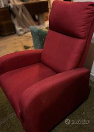 Poltrona Relax Reclinabile EUREKA, Manuale con Maniglia Laterale, Struttura in Legno, Imbottita ed Ergonomica, Ideale per Anziani e Soggiorno (Tessuto Bordeaux)