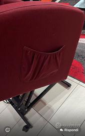 Poltrona elettrica reclinabile bordeaux come nuova. Utilizzata pochissime volte e sempre con il copripoltrona. In dotazione, un copripoltrona rosso in maglina elasticizzata.