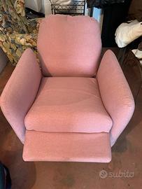 EKOLSUND poltrona reclinabile in buono stato, meccanismo perfettamente funzionante. Fodera color rosa. Alone di acqua sulla seduta che va via con un lavaggio in lavatrice. Prezzo nuova :€399