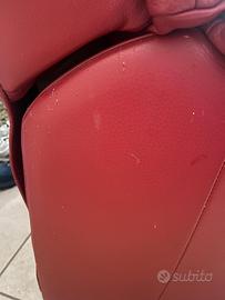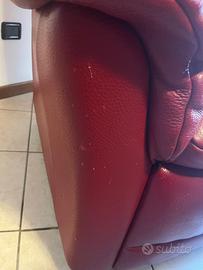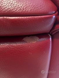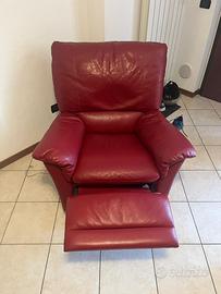 Due poltrone rosso bordeaux di pelle vera reclinabili ed estensibili tramite una cordina (no meccanismo elettronico). Una delle due leggermente rovinata con alcuni difetti che si possono vedere anche in foto, ma si fornisce il prodotto per trattare la pelle con allegate anche le istruzioni d’uso