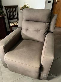Poltrona Reclinabile Manualmente a 60° Extra Imbottita in Tessuto con Poggiapiedi, colore fango.