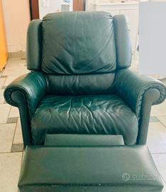 Perfettamente funzionante poltrona reclinabile originale comoda in vera pelle verde scuro.