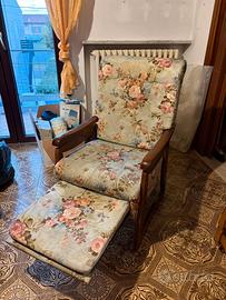 Poltrona reclinabile con estensione estraibile struttura in legno massello robusto tessuto fantasia floreale senza difetti di cuciture ottime condizioni dell'imbottitura. Regalo seconda poltrona senza estensione .