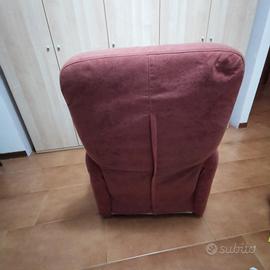 Vendo poltrona reclinabile di colore bordeaux sfoderabile. Reclinazione dello schienale e innalzamento automatico della pediera.