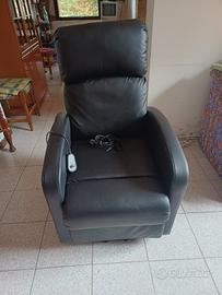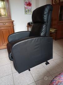 poltrona reclinabile in pelle nera usata pochissimo, comoda e movibile con rotelle, adatta agli anziani e non. Le foto indicano il prezzo originale.