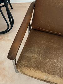Comoda e bella, tubolari in acciaio, braccioli in legno e seduta in pelle usurata dal tempo. Bellissima anche da tenere cosi con i segni del tempo