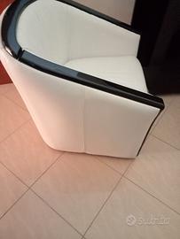Poltrona in pelle bianca con bordi legno lucido molto elegante.Da ritirare di persona.