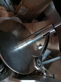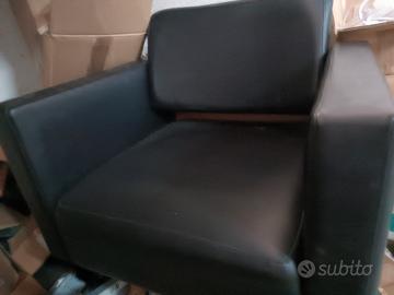 poltrona in pelle nera con base tonda ed altezza regolabile. la poltrona si trovava da un barbiere, ma per dimensioni e design può essere utilizzata tranquillamente in una stanza.