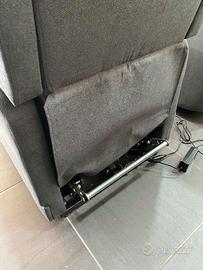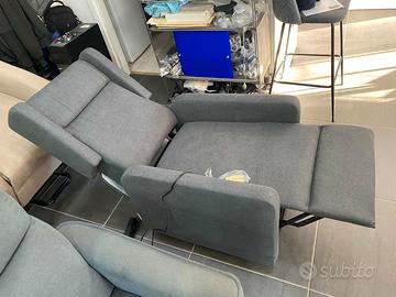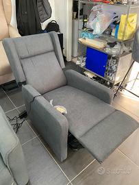Poltrona relax elettrica con sistema alzapersona ad un motore e con poggiatesta laterali.La poltrona inoltre è dotata di meccanismo roller system così da facilitarne lo spostamento .Disponibile in tessuto velvet grigio scuro o sabbia.