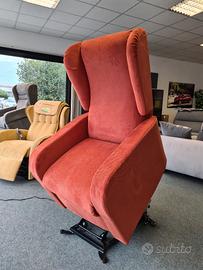 Poltrona Relax alzapersone con 2 motori, con roller per spostamento su ruote, completamente sfoderabile, tessuto idrorepellente, possibilità IVA agevolata al 4%, garanzia nazionale 24 mesi