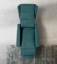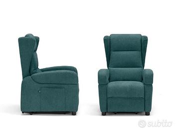 Poltrona Lift-Relax realizzata con meccanismo motorizzato. La struttura solida è assemblata con parti esterne e interne in agglomerato di legno (multistrato e massello di legno) ricoperta da poliuretano espanso indeformabile.
