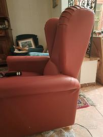 Poltrona elettrica con alzapersona e sistema di reclinazione a due motori indipendenti, dotata di telecomando.