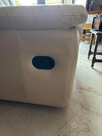 Poltrona relax in pelle color panna, Chateau d'ax, con poggiapiedi apertura meccanica, spalliera reclinabile, misure: profondità cm 87, larghezza cm 101, altezza complessiva cm 90. Zona Lazio. prezzo leggermente trattabile