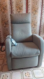 Poltrona relax come nuova vedo per liberare casa. Schienale reclinabile, poggiapiedi sollevabile, funzione sollevamento per mettersi in piedi agevolmente. E' dotata di ruote per spostamento agevole. È stata acquistata 3 anni fa ma usata solo pochi giorni... praticamente nuova!