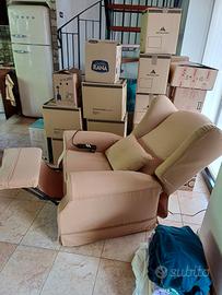 Poltrona relax con doppio motore , fatta da artigiano con schienale comodo x persone alte . Vendiamo con dispiacere causa cambio di casa , motivi di spazio. .