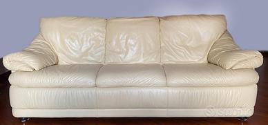 Vendo, anche separatamente, divano 3 posti in pelle e poltrona relax meccanica con schienale reclinabile fino a 135°. Colore giallo/crema marca Divani & Divani by Natuzzi .