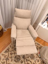 Vendo poltrona che ho comprato per la cameretta di mio figlio appena nato, praticamente nuova, perfettamente funzionante. La poltrona si reclina completamente anche con lo schienale.