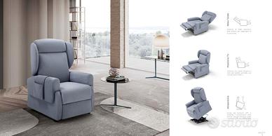 La Poltrona relax ed alzapersona Mirò esce fuori dallo stile classico dei modelli Relaxit, rivolti principalmente ad un utilizzatore anziano, poiché è realizzata con linee più moderne senza tralasciare il comfort. Monta il bracciolo estraibile di serie.