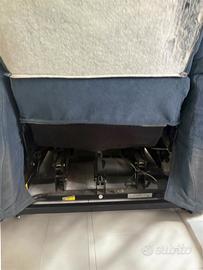 Vendo poltrona relax con meccanismo di reclinazione e sollevamento elettrico perfettamente funzionante. La struttura interna e il motore sono in condizioni ottimali. Come è possibile vedere chiaramente dalle foto, il rivestimento in tessuto blu presenta evidenti segni di usura e alcuni strappi, in particolare nella parte superiore e posteriore dello schienale. Per questo motivo, la poltrona è perfetta per chi desidera utilizzarla con un copripoltrona o per chi ha intenzione di rifoderarla.