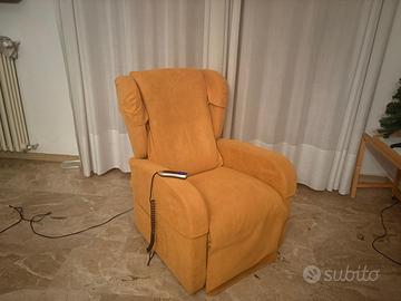Vendo poltrona relax elettrica a due motori per ciascuno dei due movimenti come da foto. Permette anche l'alzata per persone con difficoltà di alzarsi autonomamente. La poltrona è dorata di carrello per essere spostata in casa senza fatica. Sfoderabile e lavabile.