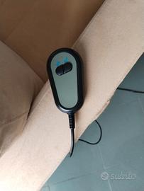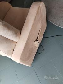 Poltrona relax: con comando elettrico la seduta si abbassa fino al punto visibile in foto (non diventa orizzontale tipo letto) e la seduta si solleva e si inclina per aiutare ad alzarsi. Il rivestimento è in robusta microfibra di colore ocra. Tale materiale non patisce nulla e si pulisce con semplice spugnetta, acqua e un po' di ammoniaca. La poltrona è davvero confortevole, morbida e te imbottita, ci si può stare a lungo senza risentirne fisicamente. Usata, ma in ottimo stato.