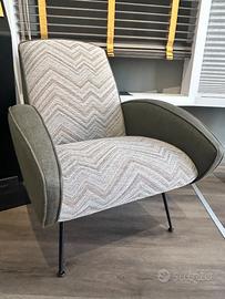 il nostro ShowRoom SCENARI propone in sconto SOLO per chi la acquista su questo portale fantastica poltrona per interni relax APPENA ARRIVATA con tessuto BLOOMING naturale (cotone e viscosa) di comodità elevata, braccioli e retro tinta unita verde militare, parte della seduta fantasia tono su tono con effetto spigato con cenni di colore rosa antico e verde oliva.