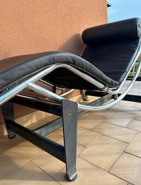 comoda poltrona in pelle da interno o da esterno, in pelle nera, presenta qualche piccolissimo segno di usura.