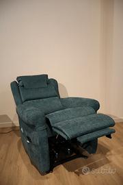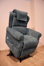 Poltrona relax completa di doppio motore (reclinabile e alza persona) e carrello con ruote per spostamento. Tessuto con fodere disponibili in diversi colori. Prodotto in Italia. Disponibili diversi modelli. Disponibile in showroom per prova!