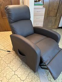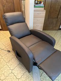 Poltrona relax elettrica, in pelle colore marrone, usata pochissimo