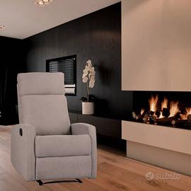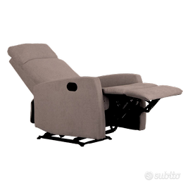Poltrona relax manuale con tasto rivestita in morbido tessuto idrorepellente colore tortora.