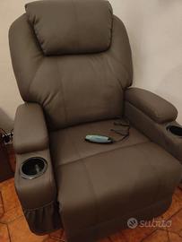 Salve come da foto vendo poltrona vibrante per momenti di relax molto bella , punti massaggianti schiena,sedia, gambe poggiapiedi misura 88x92x106 cm marrone comprata meno di un mese fa € 370 come nuova causa inutilizzo non perditempo o affaristi grazie .