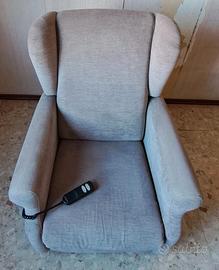 Poltrona con 2 motori, ruote per spostarla blocco e sblocco, dotata di cuscino con falda antidecubito, telecomando con custodia, copertura in dotazione. Dimensioni poltrona: larghezza cm. 80, profondita' cm. 80, altezza cm. 110