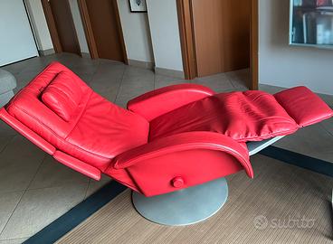 Poltrona relax in pelle rosso geranio, reclinabile e girevole. Ritiro a carico dell’acquirente
