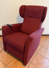 Poltrona Relax 2 motori reclinabile e alza persona con 4 ruote per trasporto facilitato con persona sopra . Usata come nuova