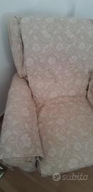 poltrona reclinabile manuale, tessuto floreale in cotone panna e beige