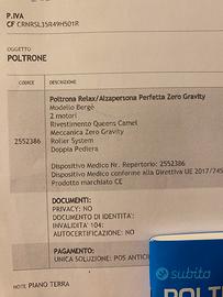 Poltrona relax con alzapersona e funzione Zero Gravity marca Reamed. Usata 1 giorno. Doppia pediera, 2 motori, con ruote per un facile spostamento. Perfetta come nuova. Con libretto di istruzioni. Prezzo trattabile. Trasporto a carico dell’acquirente.