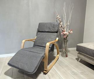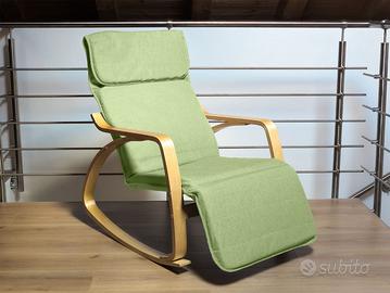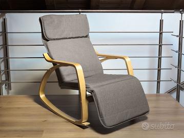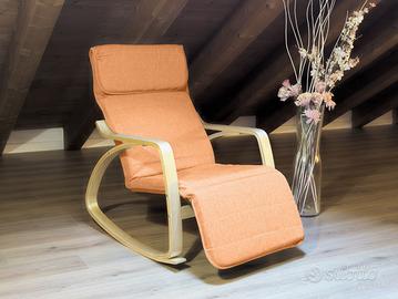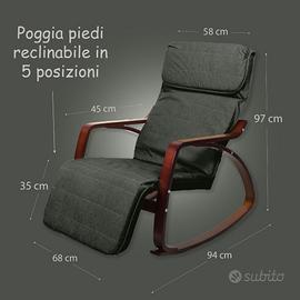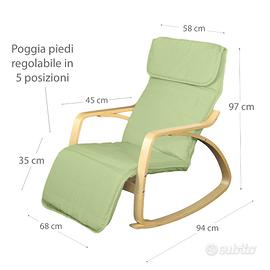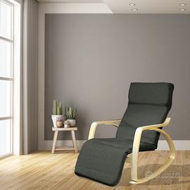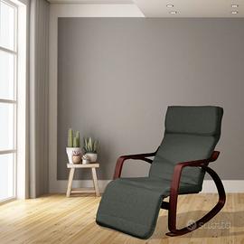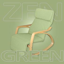 ZEN Poltrona per relax a dondolo con poggiapiedi regolabile in 5 posizioni. Grazie alla sua forma permette di dondolare dolcemente, ottima per rilassarsi leggendo un libro, riposare comodamente e perfetta per le mamme che allattano o vogliono far addormentare il bambino.