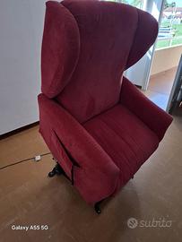 Vendo poltrona Relax XXL usata pochissimo, in tessuto rosso, con alzata assistita, ruote per spostamento (i braccioli sono estraibili per passare tra le porte) e vibromassaggiante.