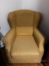 Tessuto senape spinato tono su tono. L'ampio schienale dalle forme morbide e la giusta altezza della seduta fanno si che questo modello sia molto confortevole.