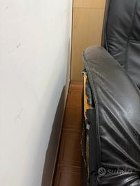 Poltrona con poggiapiedi usata, con rivestimento che si sta spellando e bracciolo rotto da un lato. Ancora comoda, vendo a prezzo simbolico.