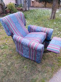 poltrona con poggiapiedi e schienale reclinabile,stoffa in cotone,ottimo stato